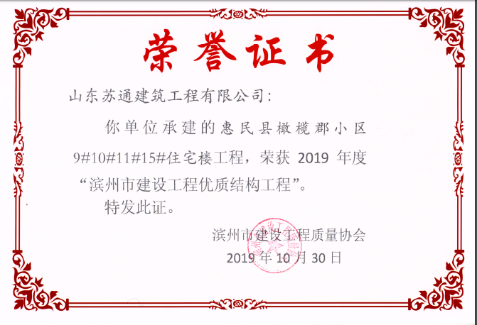 山東蘇通建筑工程有限公司,創(chuàng)建于2009年8月。目前擁有房屋建筑工程施工總承包壹級、市政公用工程施工總承包叁級、水利水電工程施工總承包叁級資質(zhì),同時還具有建筑裝修裝飾工程專業(yè)承包貳級、消防設施工程專業(yè)承包貳級、鋼結(jié)構(gòu)工程專業(yè)承包叁級、建筑機電安裝工程專業(yè)承包叁級等專業(yè)承包資質(zhì)。 公司總部坐落于山東省濱州市濱城區(qū)黃河十二路877號,現(xiàn)有辦公面積約2000平方米,機構(gòu)設黨支部工會辦公室、總經(jīng)理辦公室、綜合辦公室、工程管理部、經(jīng)營預算部、資產(chǎn)財務部、材料設備部、運行管理部、法律事務部等多個職能部門。公司管理體系已經(jīng)通過了GB/T 19001及GB/T 50430質(zhì)量管理體系、GB/T 24001環(huán)境管理體系(EMS)、GB/T 28001職業(yè)健康安全管理體系(OHSMS)等體系的認證。 公司承建完工了濱州市建大教師之家、建大清怡苑、香格里拉水岸綠城住宅小區(qū)、雙泰建大城、曲阜崇德公館住宅小區(qū)、北海新區(qū)御景藍灣住宅小區(qū)、沾化德榮國際華城住宅小區(qū)、惠民橄欖郡住宅小區(qū)等工程項目,目前在建工程項目有:濱州市頤高國際電子商務產(chǎn)業(yè)園住宅小區(qū)項目、濱州市東盛國際項目、高新區(qū)建大中央華府住宅小區(qū)項目、濱州市融匯新里程住宅小區(qū)項目、濱州市建大秦皇壹號住宅小區(qū)項目、濱州市森林花...